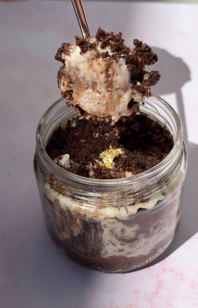 Ingredientes: Almendra, bebida de coco, huevo, chocolate vegano sin azúcar endulzado con monk fruit, cocoa, alulosa, monk fruit, polvo para hornear sin aluminio, sal del himalaya, extracto de vainilla natural.