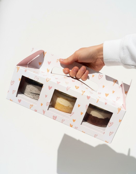 Sabores y capas: Tortuga: capas de Bizcocho marmoleado de chocolate, Caramelo y Crujientes de nuez y chocolate. Cocada: capas de Bizcocho de coco, Crema de coco Tres Leches: capas de Bizcocho de tres leches, Crema de coco y Frutos rojos. Banana Caramel: capas de Bizcocho de plátano, Caramelo con plátano, Crema de coco y Crujiente de nuez. Matcha Frambuesa: capas de Bizcocho de matcha, Crema de coco con matcha y Mermelada de frambuesa.