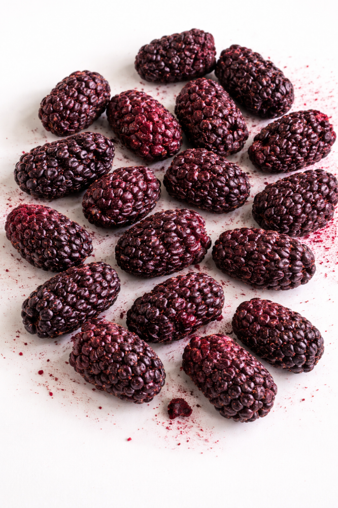 Zarzamoras 100% naturales liofilizadas, con un sabor profundo y ligeramente dulce.